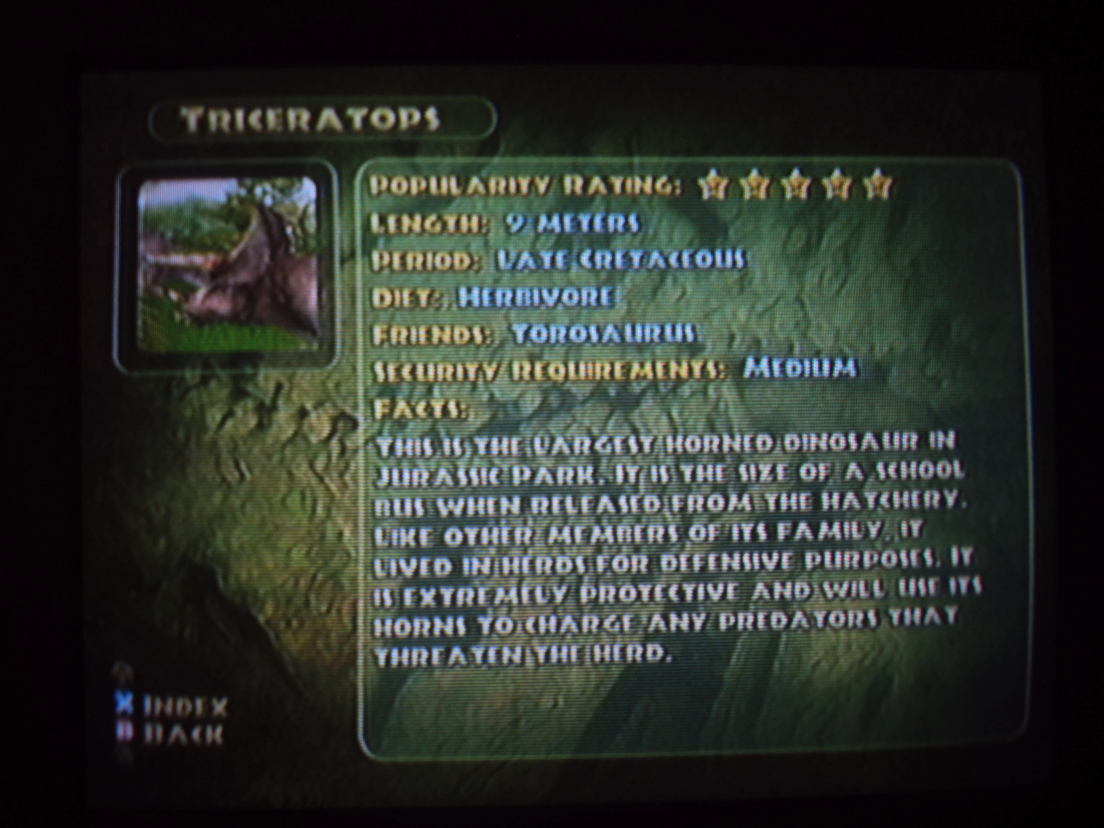 Triceratops appeared in the game Jurassic Park: Explorer.