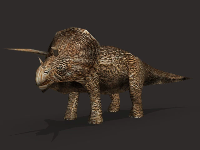Triceratops have a fan-shaped crest behind their heads, made of solid bone, and is very strong. Despite their appearance, they are actually quite docile. They form relationships with their handlers, much like Indian elephants, and will allow themselves to be petted. They particularly like to be scratched in the hindquarters.