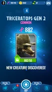 Triceratops is a common non-hybrid herbivore dinosaur in the game. It is the first dinosaur you can create. A pair of Brawlasaur variants can also be unlocked. A legendary Gen 2 variant was added on January 4th, 2021.