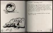 When a Troodon was about to lay eggs, she would kill one of her prey as usual, but instead of eating her kill she would instead partially bury it in a secluded area while the victim was still paralyzed and rip her victim open (apparently the abdomen in humans) before proceeding to lay her eggs.[5] It is presumed the victim's body is used to provide both body heat and food for the hatchlings, which would proceed to eat the corpse from the inside out. This method of rearing young is like that of Spider wasp species, with the cloned Troodon being the only non-insect that uses this method.[5]