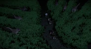 - While travelling through the long grass, the survivors of the hunting party were ambushed by a pack of raptors, causing many casualties.
